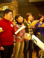 今日の講師はななさん。We are the worldに新しくハモるパートをつくり、各パートから3人ずつ歌って頂くことになりました。きれいです!