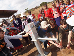 そしてポンプをもって井戸へ、実際の取り付け作業が行われます。取り付けの様子を見守る最中も、井戸を囲んで歌い続けるマサイの人たち。