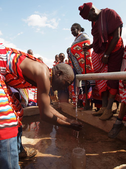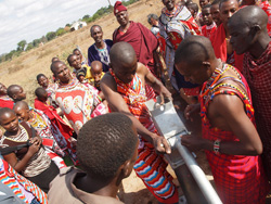 マサイの人たちも笑顔、笑顔で、皆で水が出たことを喜び合いました。