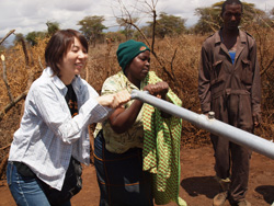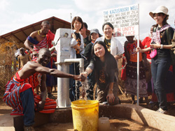 まず初めに訪れたのは、オロボロシェという土地。こちらは2010年3月に行ったGQ Familyのチャリティイベント「第2回GOSPEL FOR PEACE」での収益金を用いたポンプで、4月に完成したGQ支援での1号井戸です。