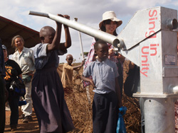 一方、水を汲み上げるためのポンプの上下運動には、それほど大きな力は必要ありません。子供でも、楽に汲むことができます。長い道のりやってくる女性・子供達のことを思うと、楽に汲み上げられるという事実には少しばかりホッとします・・・。