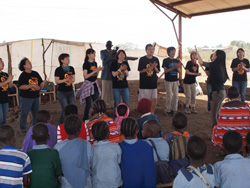 UNITY’Sとマサイの皆さん、歌の出し物交換のスタート。これなら言葉が通じなくとも、一つになれる!