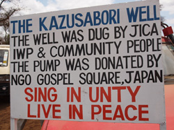 そして新しく看板も立ちました!ポンプの側面の文字は使っているうちに消えてしまうと言うことで、IWP大野さんのご配慮でこのような看板を井戸に立てていただけることに。感謝です!!