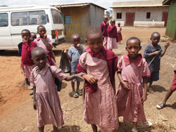 町を歩くと、おそろいの色の服を着た子供たちに出会います。これは公立の学校の制服で、ケニアの公立校は国立で運営されており、学費は無料。