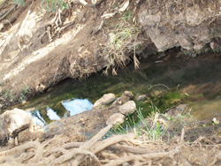 それでも、人も家畜も野生動物も、皆がこの細~い水流を頼りにしてここに水を飲みに・汲みに来るのです。
