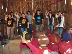 子供達が歌とお遊戯で迎えてくれました。とっても可愛いかったけれど、お遊戯の内容の多くはこの学校の建学の精神や、目標・理念のようなものを言葉と全身の動きで表すもの。「ここで先生方と勉強して、誰も辿り着けなかった高いところをめざします」と、コブシを作って声をそろえて。学ぶことに未来を託す並々ならぬ真剣さがものすごく伝わってきました。