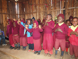 無料の公立に対して、こちらはお金がかかりますが、それでもこちらの方が子供達の将来のために良いと判断した親たちが選んで通わせるそうです。ケニアでは、英語教育は必要不可欠。 子供達は、一生懸命覚えた英語で毎日先生へ挨拶をします。