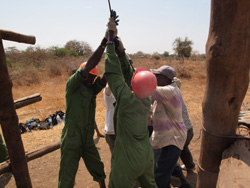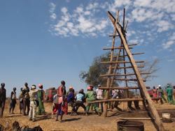1号井戸から程近い場所、私たちが到着すると、まさに採掘作業が目の前で着々と行われていました。ヘルメットを被っているのはIWPの現地スタッフの方。そのほかはこの井戸を必要とするコミュニティの男性達です。