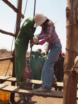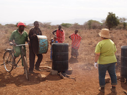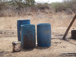 採掘に使う水を溜めるタンク。これで地面をやわらかくドロドロにしながら堀り進めます。汲んでくるのは、コミュニティの女性達のお仕事。苦労して溜めたタンクの水が、野生の象に飲みつくされてしまったなんていうトラブルがあったこともあるそうです。