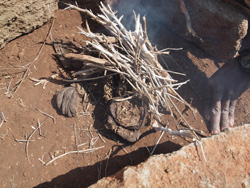 頭に担いで持ち帰った薪に加えて・・・見てください。動物のフンも、燃料になっています。そこらじゅうに落ちているカラカラに乾いた家畜の糞は、火をおこすのにも使えるんですね。生活の知恵。
