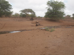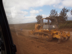 ケニアの既存の道路、私達の走っていた道路のほとんどは、こういった赤茶けた土が均された状態になっている道路。車にのっていても、ガタンガタンと、お尻が上下に揺れます。また、空気の乾燥も手伝って、マスクをしていないと鼻が真っ黒になってしまうような土ぼこり。