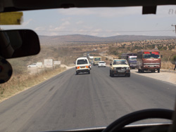 車のスピードが、いっきにググっとあがるのがわかり、乗っている身体も楽で、舗装道路の有り難味を実感!実際、途中まで舗装が進んだことによって、大野さん達が仕事で首都とロイトキトックを往復するのに要する時間が2時間も短縮されたとか。