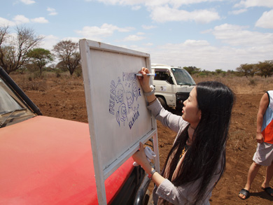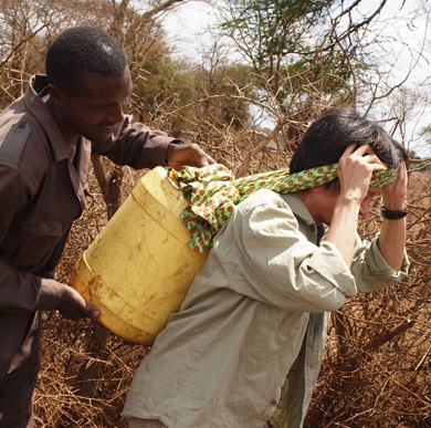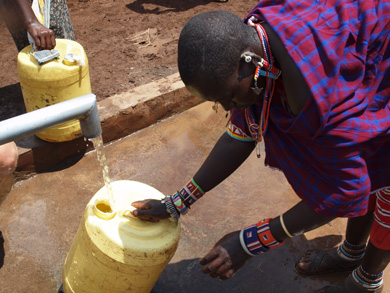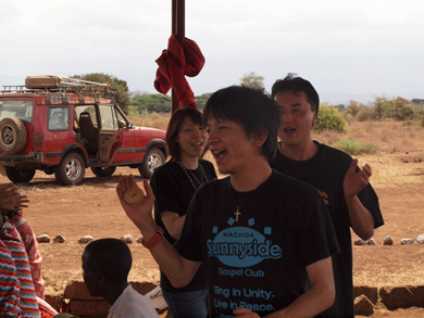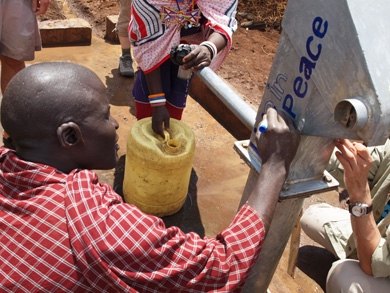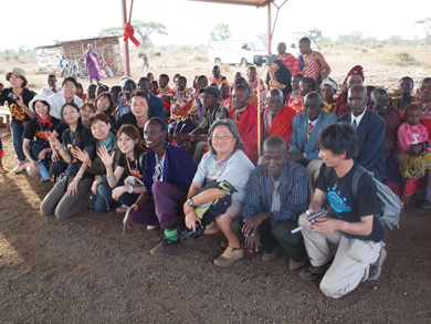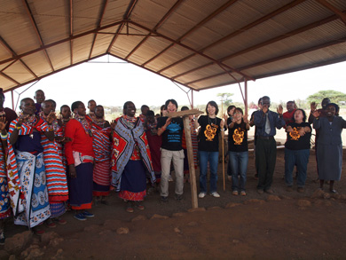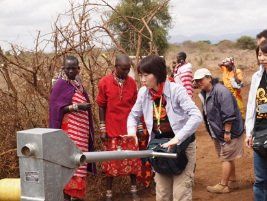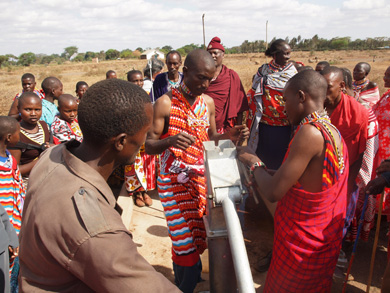そこにはIWPが以前に作った井戸があり、ポンプが壊れて水が出ず困っていたとのこと。マサイ式の歓迎を受け、再び水がでるようになった井戸を皆で喜び合いました。