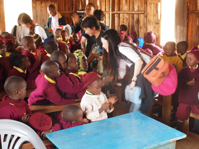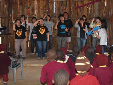 今回のツアーでは、IWPの大野さんが作ったストーリーに私たちGQ Familyが絵をつけて作ったオリジナル紙芝居を手渡しすることができました。