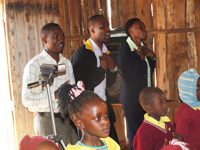 地元の小学校を訪問しました。IWPでは、小学校での衛生教育を支援する活動も行っています。そのひとつは、衛生をテーマにした物語を紙芝居にする「紙芝居プロジェクト」。