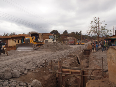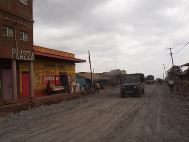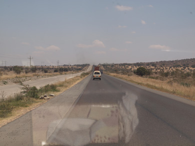 ナイロビの舗装された道路から、井戸現場への拠点となるロイキトックという小さな町に近づくにつれてデコボコの砂利道に。工事中の場所も非常に多く、車内で歌を練習しつつも、マスクが必須。